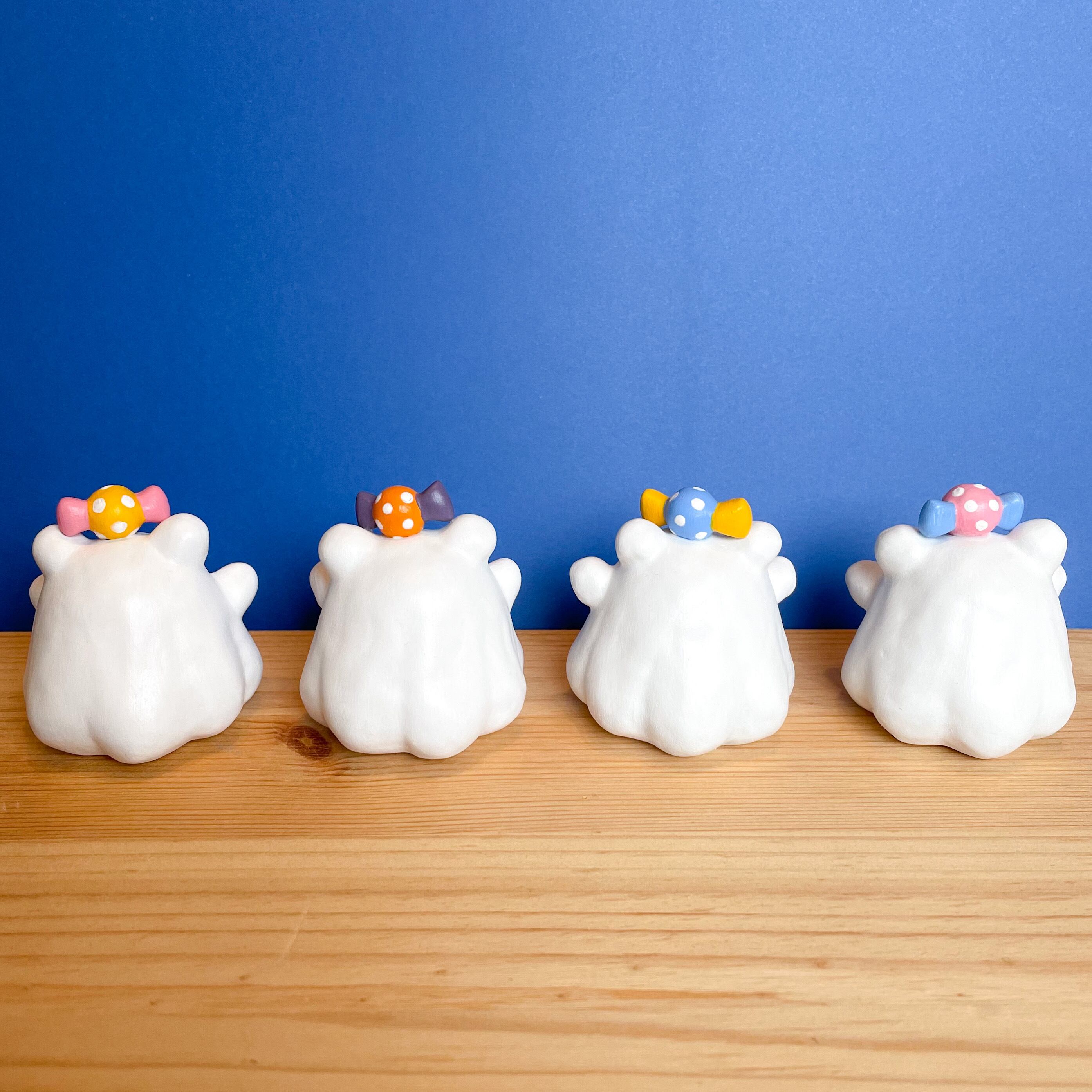 飴を貰って喜んでいるゴーストメンダコ張り子です。1匹1匹飴の色が違います。4種類の中からお選びいただけます。