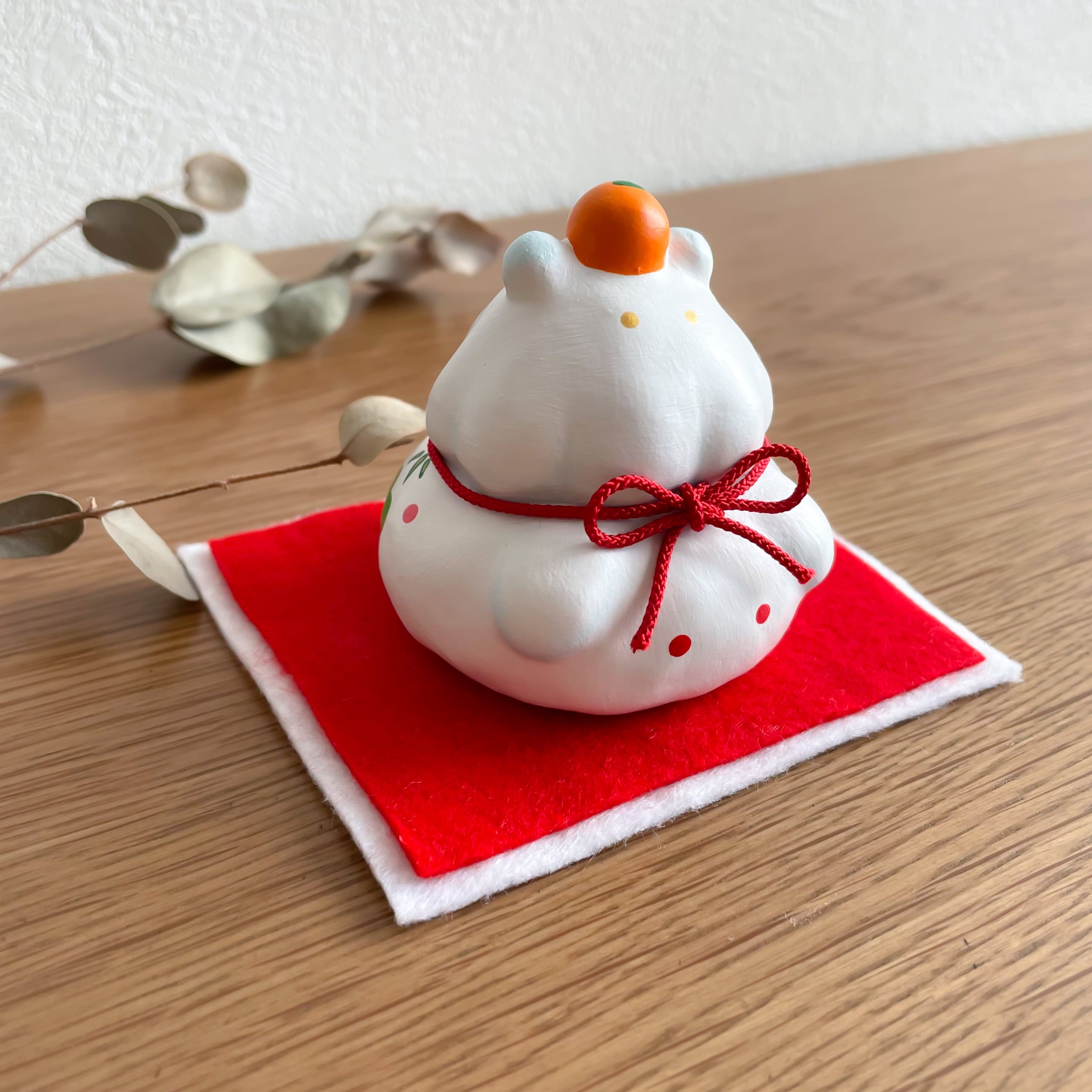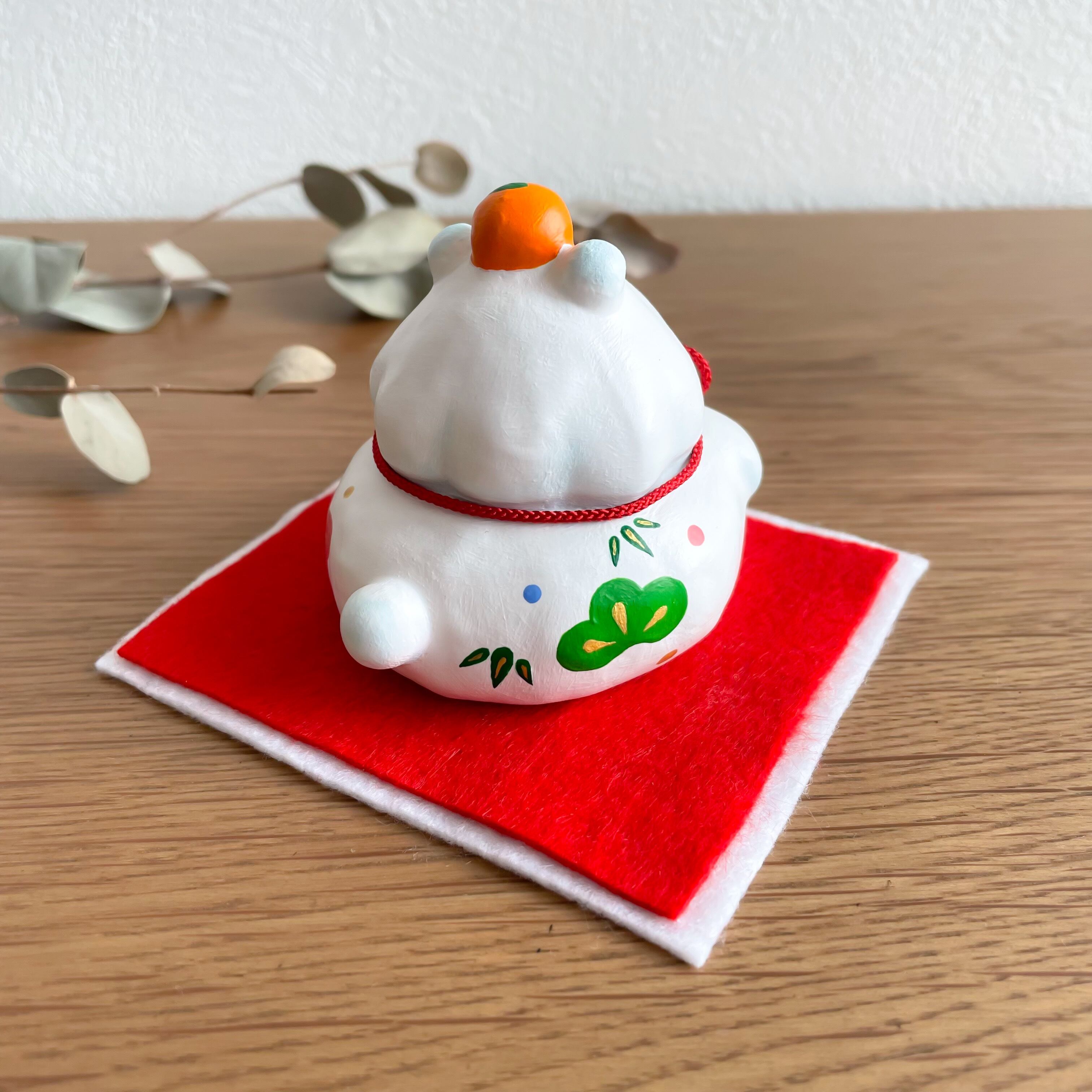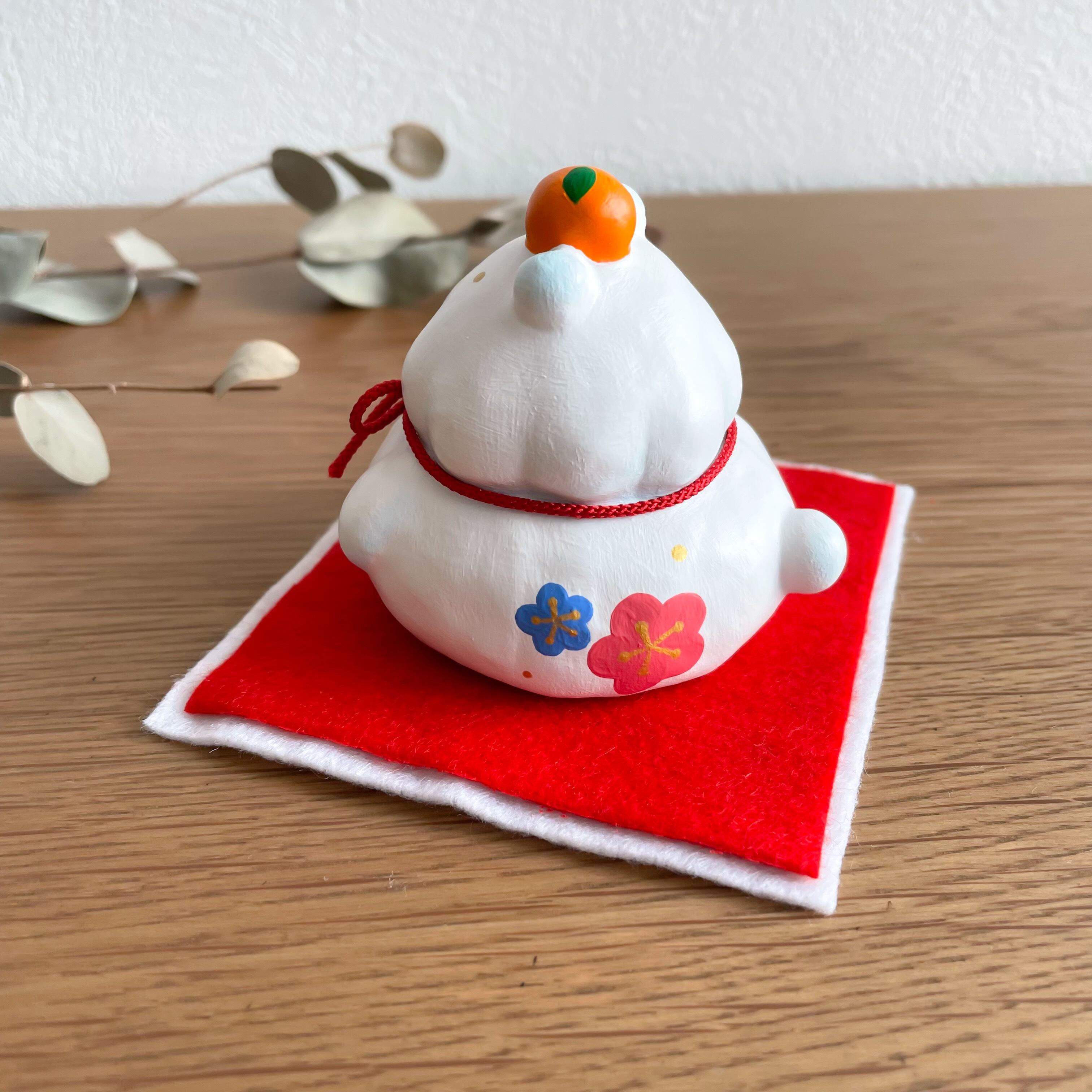 [正月飾り]もちうさともちめんの鏡餅 張り子 置物
